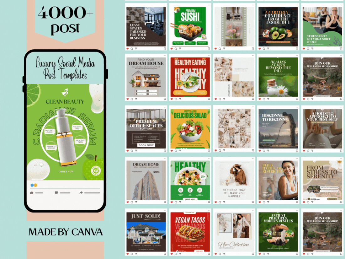 Get 4,000+ ready-to-use Canva templates and 200+ reels, bundled into 150+ themed packs for 10+ industries, including Wellness, Food, Real Estate, Lifestyle, and more. Design faster, post consistently, and grow your brand with ease!